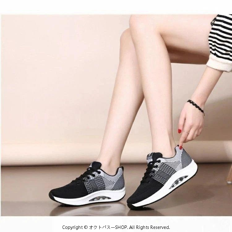エアロビクスシューズ レディース ダンススニーカー 厚底スニーカー ウォーキングシューズ 船型底ナースシューズ 美脚シューズ 軽量エアークッション付き 歩きやすい厚底シューズ 姿勢矯正シューズ