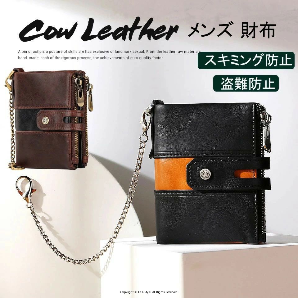 スキミング防止 財布 メンズ 二つ折り 財布 ケース メンズ財布 続々入荷中 ブラック ブラウン オレンジ