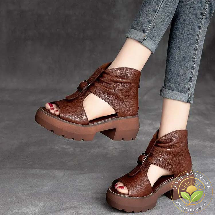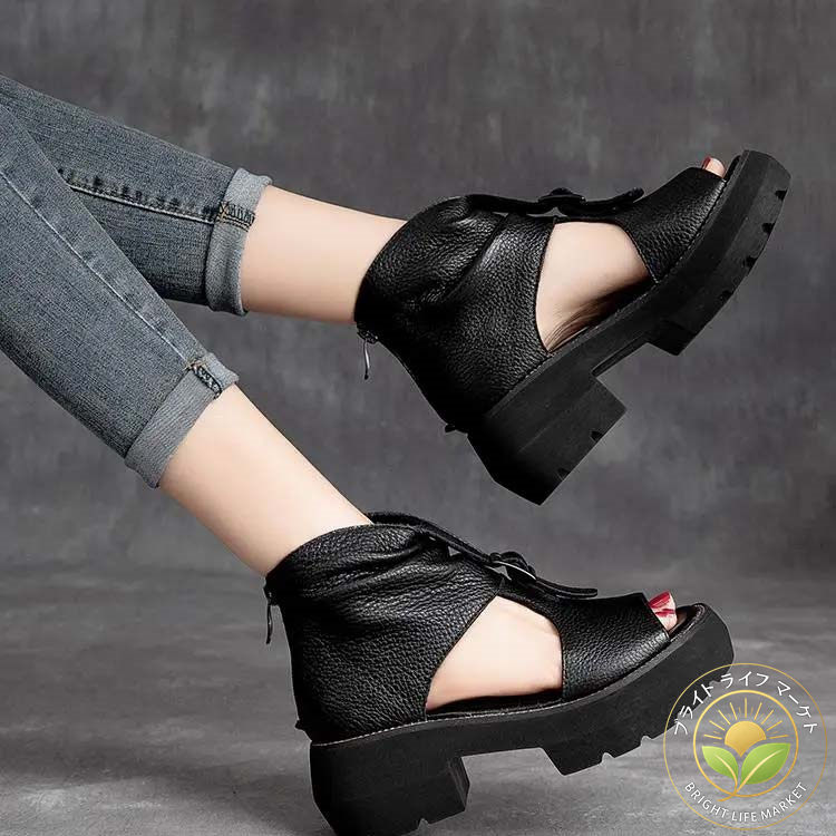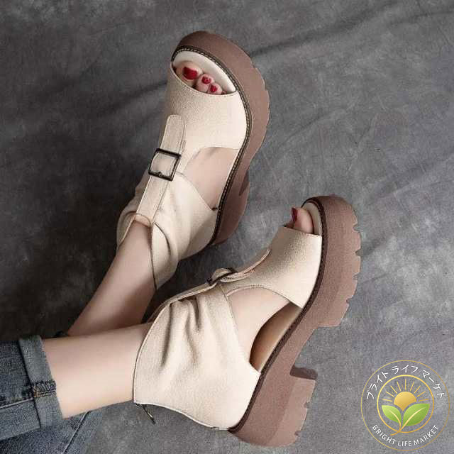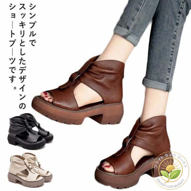 ブーツサンダル レディース 厚底 おしゃれ ウエッジソール サンダル オープントゥ コンフォート サマーブーツ ショートブーツ 歩きやすい 痛くない 軽量 ブーサン 疲れない カジ ぺたんこ