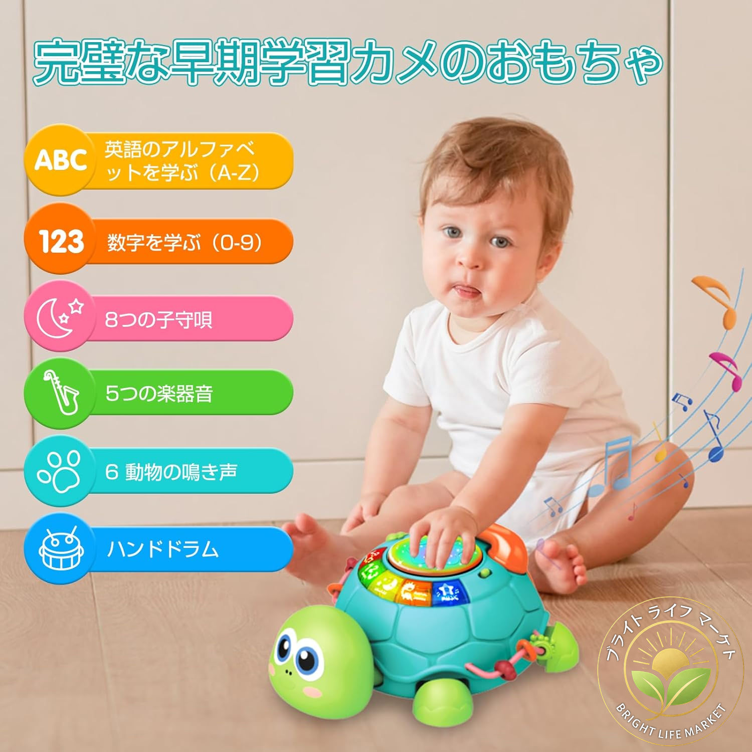 多機能 ハイハイカメ 赤ちゃん おもちゃ 知育玩具 1歳 2歳 音と光 指先訓練 聴覚発達 色認知 動物認知 鼓 楽器 玩具 0歳 出産祝い 男の子 女の子 1歳児 誕生日 プレゼント 子供