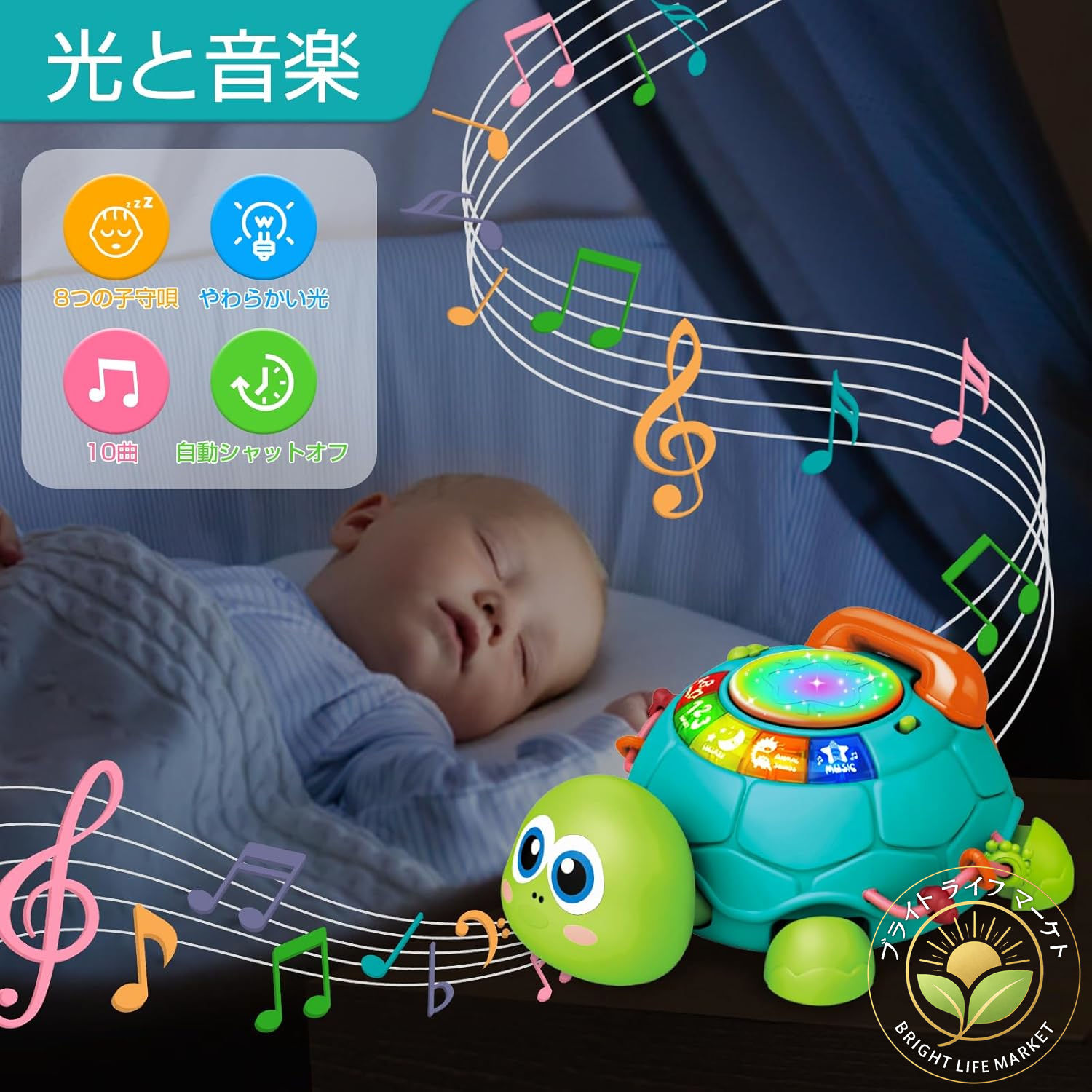 【楽器玩具】カメのおもちゃには、5つの楽器の音、8つの子守唄、7の動物の音、10の人気のベビーソングが搭載されています。カラフルなライトと音楽が赤ちゃんの注意を引きます。 赤ちゃんは音楽のリズムに合わせて真ん中の鼓を小さな手で叩くこともでき、聴覚の発達を刺激し、音楽への興味を高めるのに役立ちます。