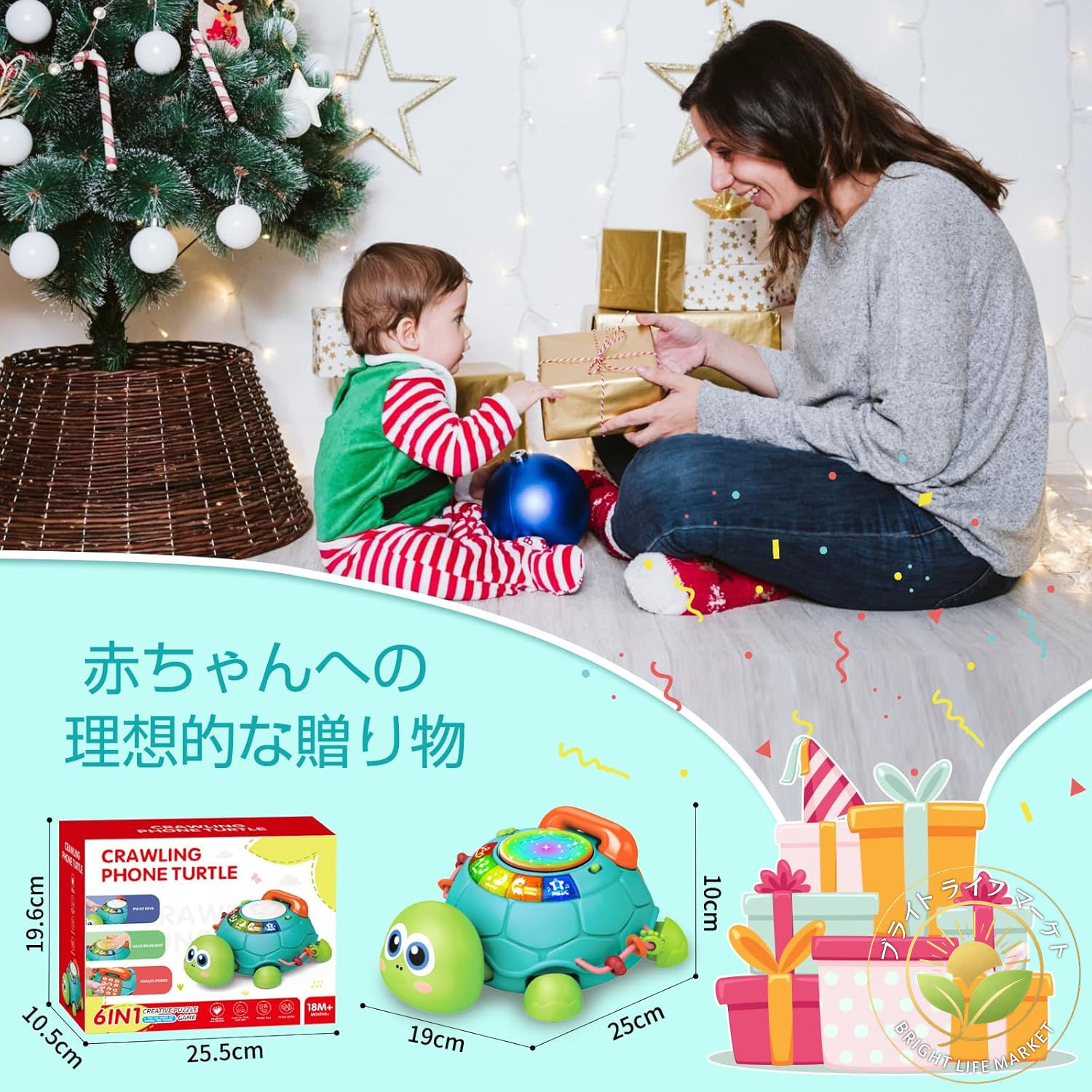 【子供の成長に合わせるおもちゃ】カメのボタンをオンにすると、カメのおもちゃが這い始めます。点滅するライト、リズミカルな音楽、そして愛らしく這うカメが赤ちゃんの注意を引き、這ってカメを追いかけるように促します。音楽玩具には機能的なボタンもたくさんあり、赤ちゃんが座ったり、遊んだり、探検したりするのを促すこともできます。カメのおもちゃは、さまざまな段階のお子様の遊びのニーズを十分に満たすことができるため、お子様の最初の贈り物に最適です。