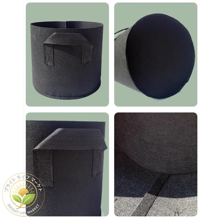 高品質の厚手の不織布と裏地から作られ、通気性、浸透性が良い。植物育成に大きな役に立ちます!再利用可能な分解性材料で、簡単に腐食しない。軽量で、空間を占めない、ベランダや庭には使えます。花や果物などの植物を栽培でき、普通の植物栽培鉢よりもっと便利です。無公害、環境に優しい植え袋です。