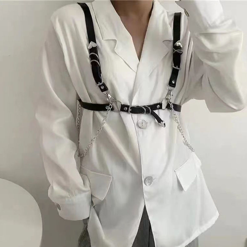 キッズ 大人 ベルト チェーンベルト 吊りバンド サスペンダー ダンス衣装 ダンス用小物 レディース ヒップホップ 衣装 ダンスファッション フェイクレザー ウエスト バック PU