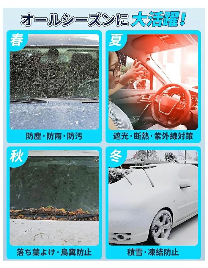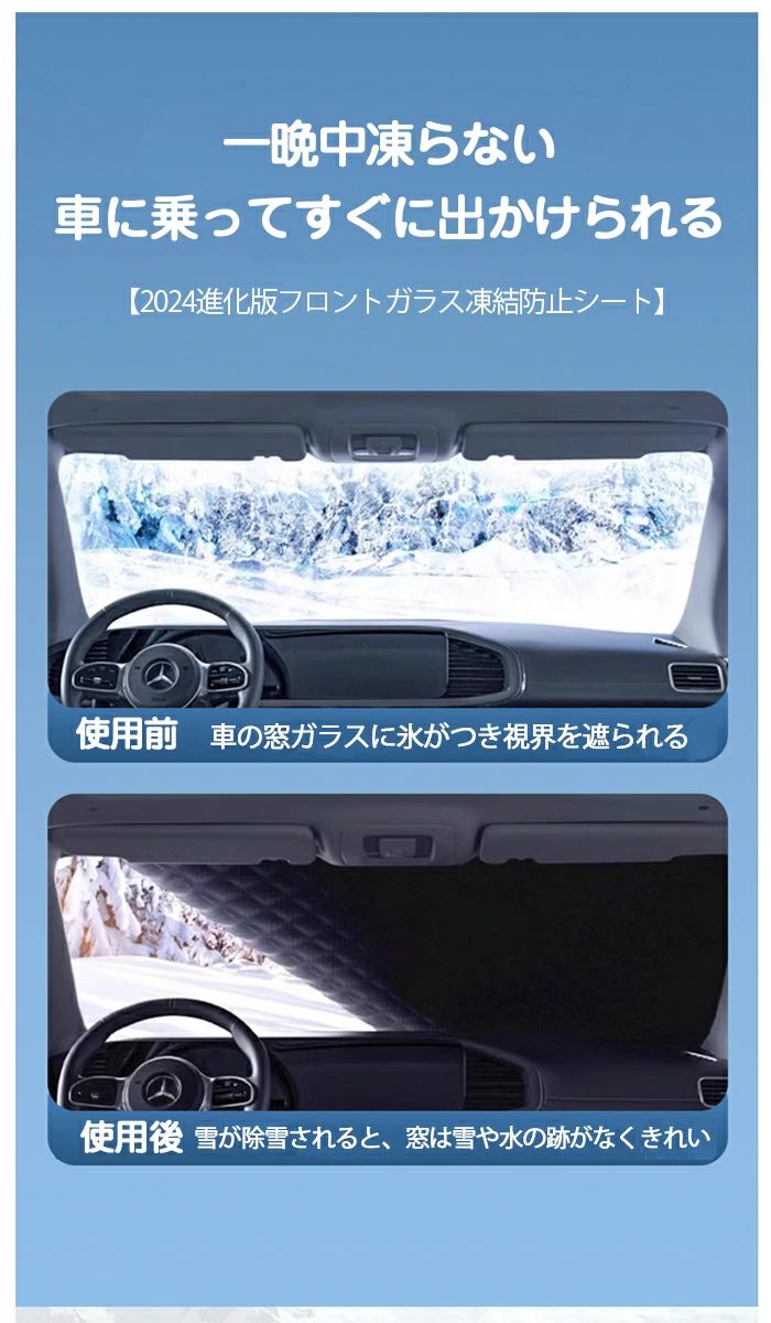 霜よ 雪対策 強風対策 8枚磁石内蔵 6本ストラップ固定 保護カバー 車用凍結防止カバー 2024新型 凍結防止シート フロントガラス
