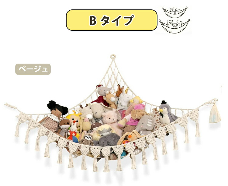 ぬいぐるみ 収納 ハンモック 吊り下げ A タイプ B タイプ ベージュ グレー ピンク パープル ブラック カラフル ブルー