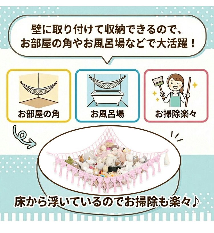 ぬいぐるみ 収納 ハンモック 吊り下げ 大容量 おもちゃ 収納 おしゃれ インテリア 壁掛け 子供部屋 リビング ワンルーム ぬいぐるみハンモック 省スペース 収納用 ぬいぐるみ収納 ぬいぐるみネット 室内 ディスプレイ 壁面収納 北欧 インテリア 人形 フリンジ 便利 新生活 2タイプ 豊富なカラー 省スペース 収納用 見せる収納 吊り下げ収納 玩具収納 子供 子供部屋 大きいぬいぐるみ おもちゃ棚 大容量 キッズ マクラメ編み 整理 オシャレ シンプル かわいい