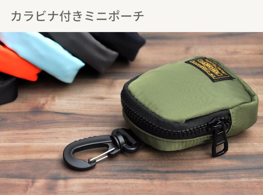 カラビナ付きのミニポーチです。