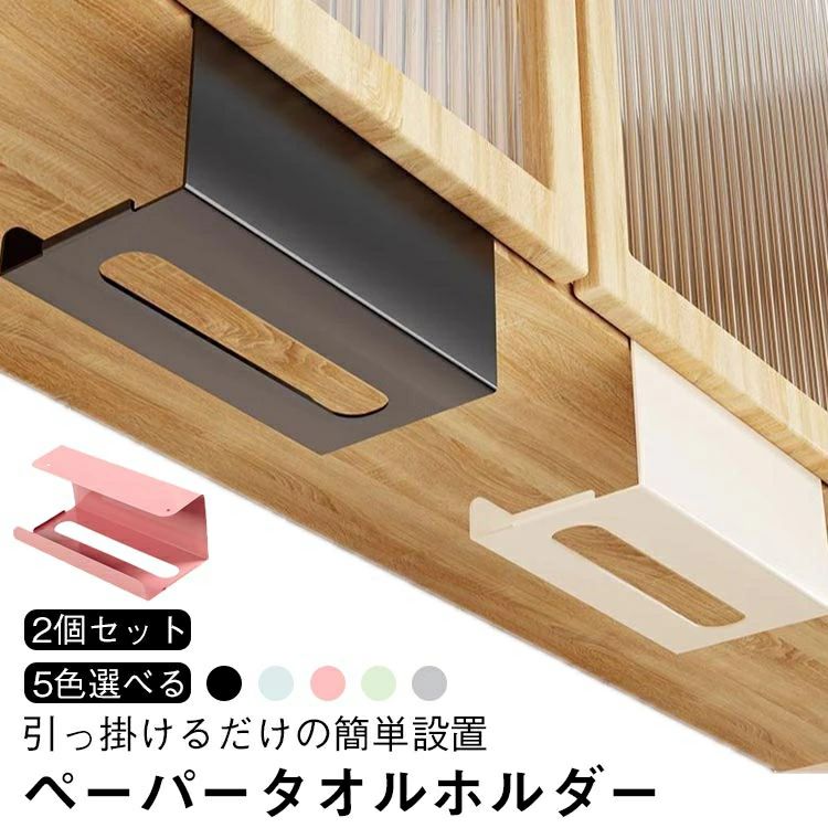 【引っ掛けるだけの簡単設置 ペーパータオルホルダー 2個セット 5色選べる】
