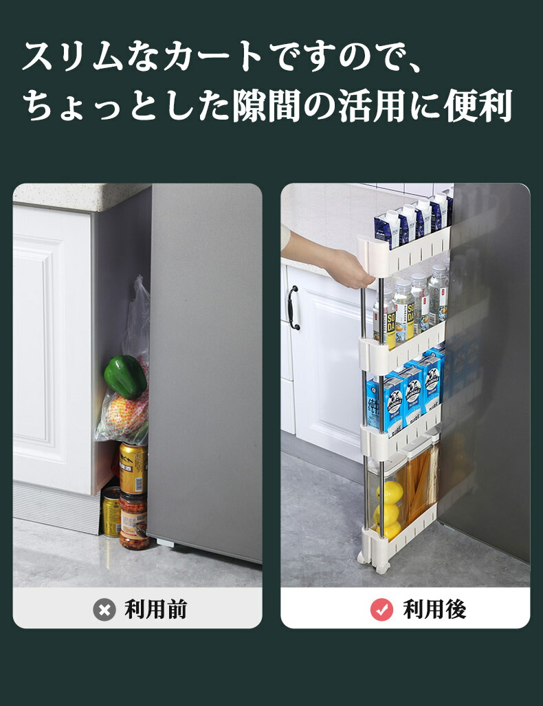スリムなカートですので、ちょっとした隙間の活用に便利です。