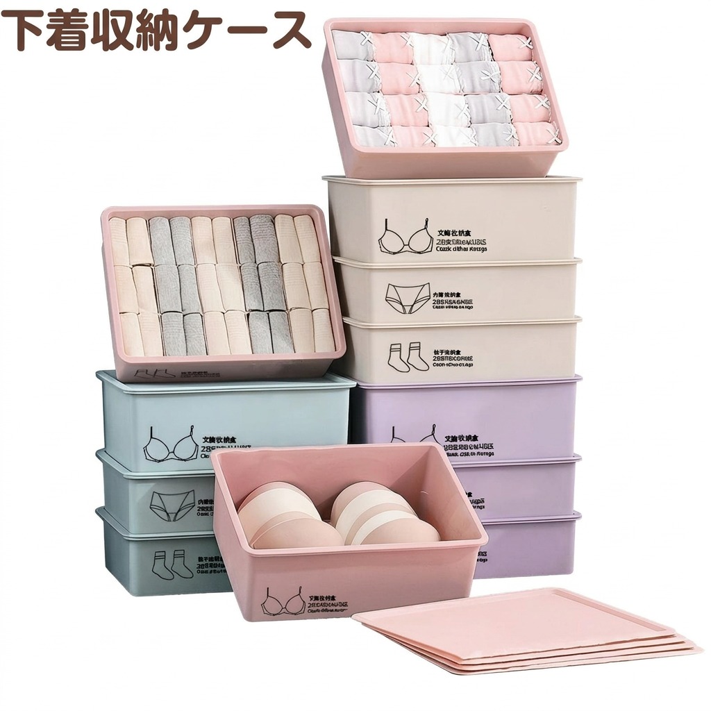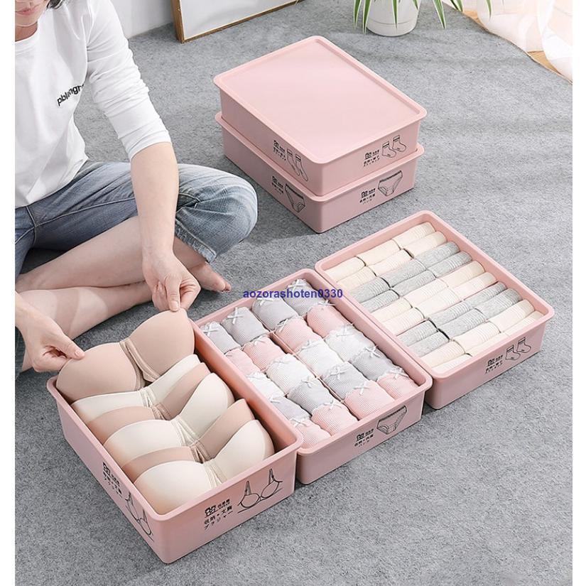 収納ケース 靴下収納ボックス 10マス 3個セット 蓋付き 小分け収納 下着 ハンカチ 小物収納用 防塵 防湿 洗濯可能 水洗い可能 タンス スペース節約 引き出し式 クローゼット