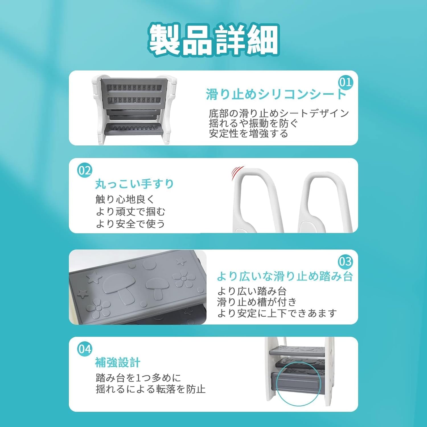 踏み台 トイレ 踏み台子供用踏み台 ステップ キッズステップ ステップ台 トイレトレーニング 補助踏み台 階段 手すり 滑り止め 安全 頑丈 洗面所 トイレなどに適用 大人 キッチン