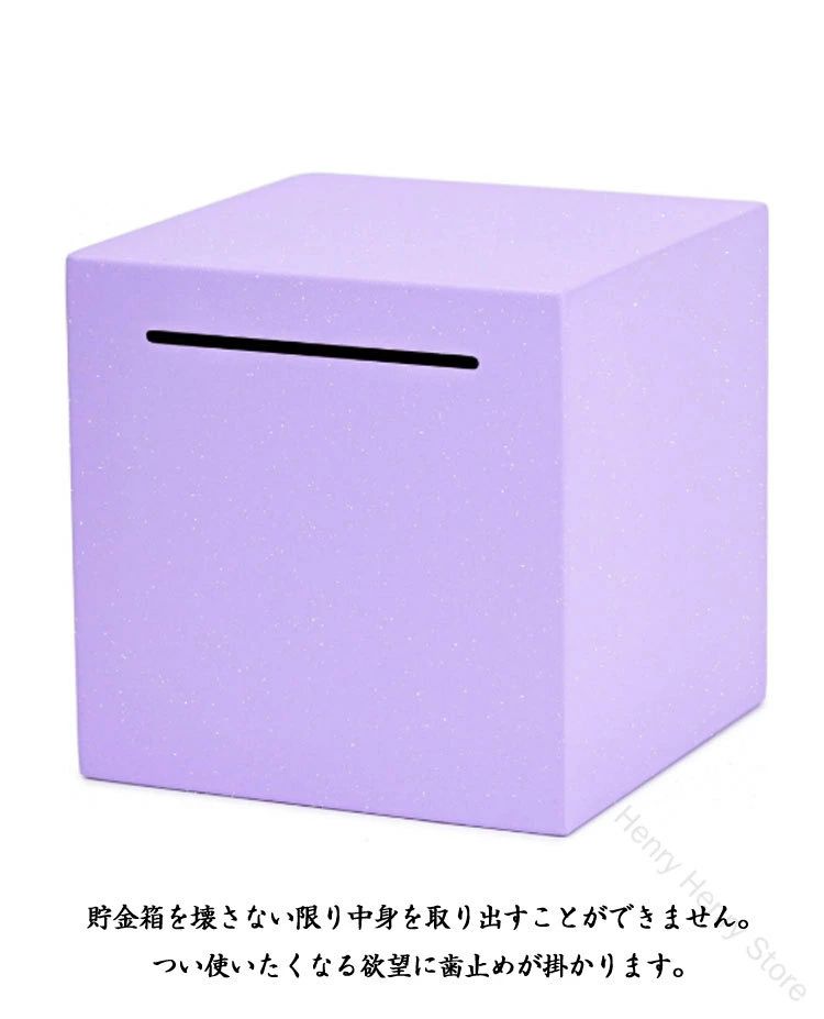 開かない貯金箱。お金を入れる穴は大きめのサイズとなっているため、小銭もお札もスムーズに入れることができます。お札が折りたたまずに入る。同じ向きで入れるから中で詰まらない。貯金箱を壊さない限り中身を取り出すことができません。つい使いたくなる欲望に歯止めが掛かります。シンプルなデザインとなっているため、室内のインテリアにも自然に馴染みます。