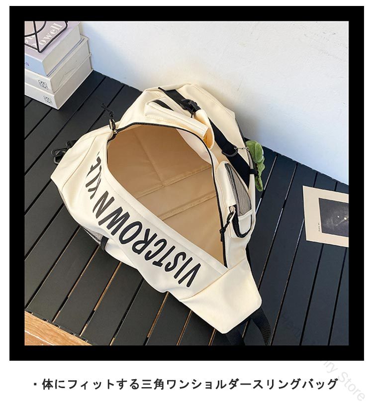 ・大きめサイズで使い勝手抜群! ・体にフィットする三角ワンショルダースリングバッグ ・メイン収納に加え、ポケットも備えており、荷物がすっきり片付きます。 ・ユニセックスで使いやすいデザイン ・通勤・通学、アウトドアや旅行など幅広く活躍するワンショルダーバッグです。