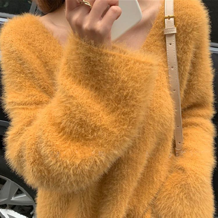 トップス もこもこ ニット ふわふわ レディースファッション 豊富な品揃え 白/Vネック ピンク/Vネック ブルー/Vネック イエロー/Vネック 黒/Vネック 白/ラウンドネック ピンク/ラウンドネック ブルー/ラウンドネック イエロー/ラウンドネック 黒/ラウンドネック S(40-47.5KG) M(47.5-52.5KG) L(52.5-60KG) XL(60-67.5KG) 2XL(67.5-72.5KG)
