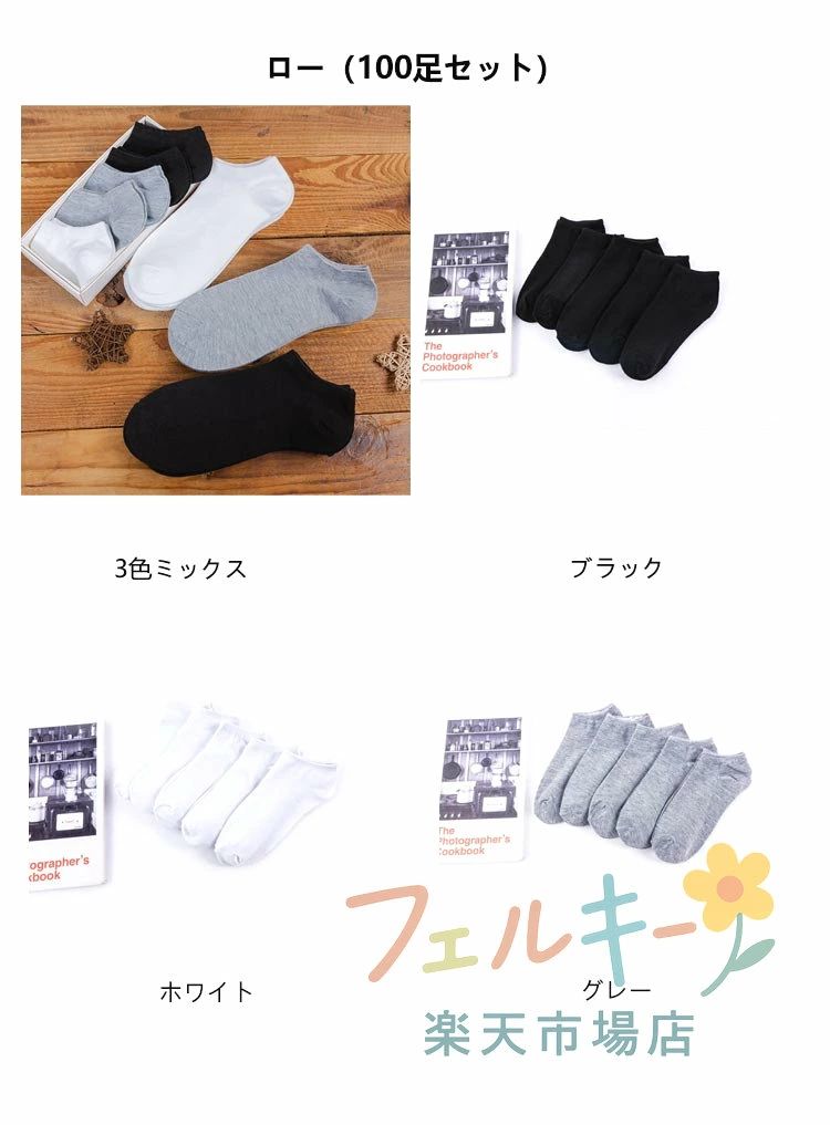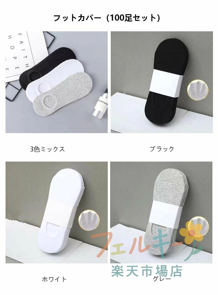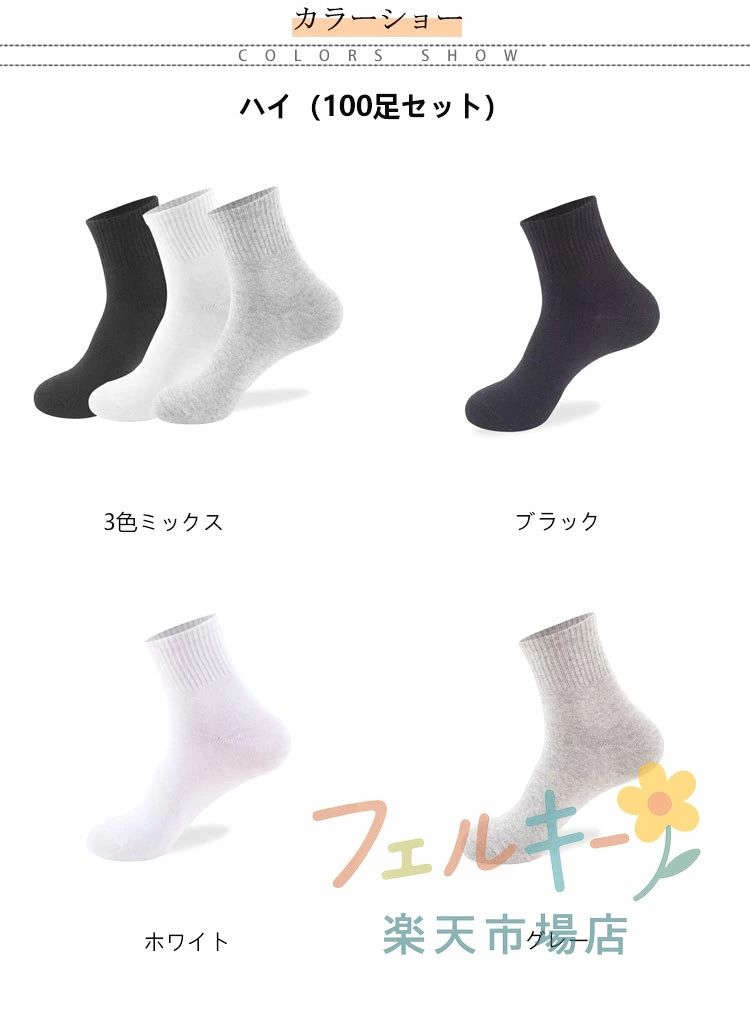 使い捨て靴下 100足セット 抗菌 吸 ユニセックス 靴下 レッグウェア 通販 3色ミックス ブラック ホワイト グレー ハイ(100足セット) ロー(100足セット) フットカバー(100足セット)