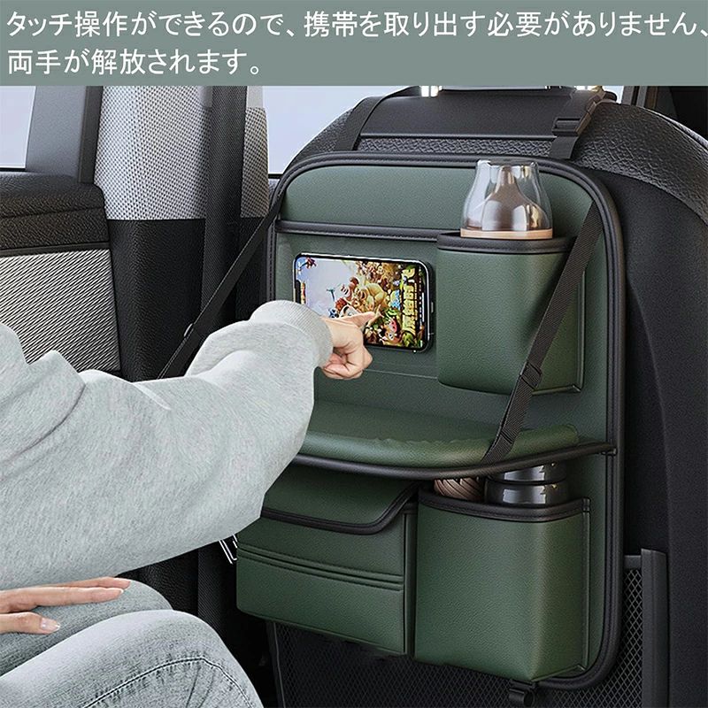 【折りたたみダイニングテーブル】この車用シートバックポケットは、折りたたみダイニングテーブルが付いていて、車の中でタブレットを使ったり、食事をしたりするのに便利です。テーブルを使わない時は折りたためて、使い勝手が良いです。