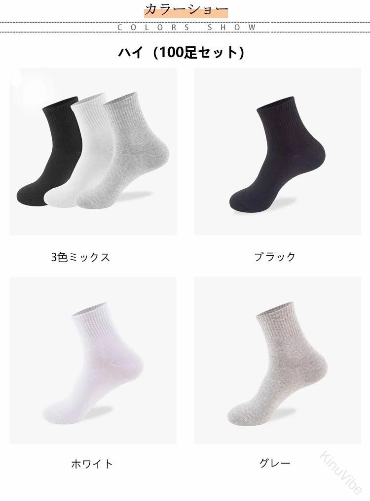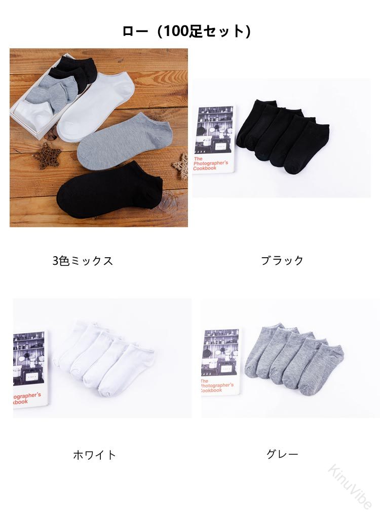 旅先で活躍 消臭機能付き綿靴下100足 ユニセックス 靴下 レッグウェア 通販 3色ミックス ブラック ホワイト グレー ハイ(100足セット) ロー(100足セット) フットカバー(100足セット)