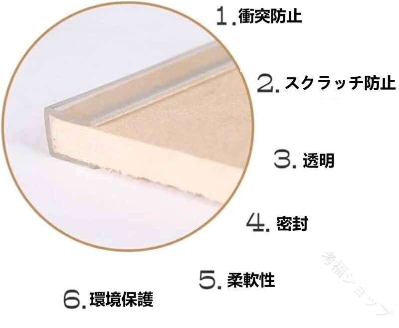 家具エッジガード ガラス用 U型 透明タイプ カット可能 長さ4mと5m PVC素材 着脱可能 保育園 オフィス 安全対策用品 赤ちゃんのけが防止