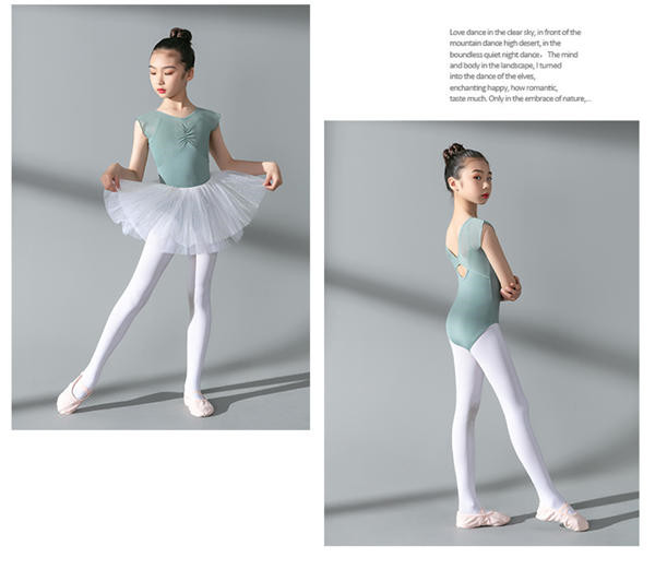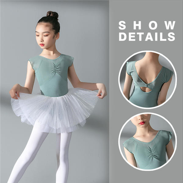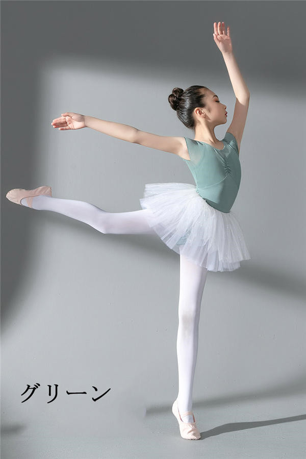 バレエ レオタード バレエレオタード キッズレオタード キッズダンス衣装 子供バレエ 袖なし ノースリーブ 透け感 子供用衣装 バレエ発表会 女の子 バレエダンス スカート 演出用 グリー ダンス衣装