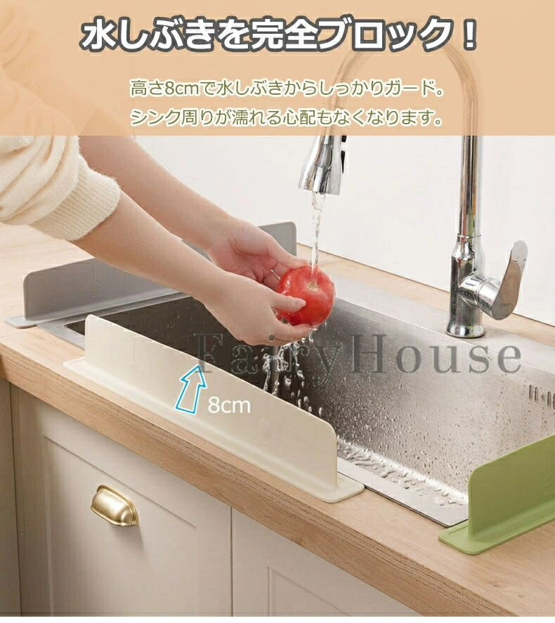 高さ8CMの絶妙な高さが水しぶきや水撥ねをしっかりとガード!