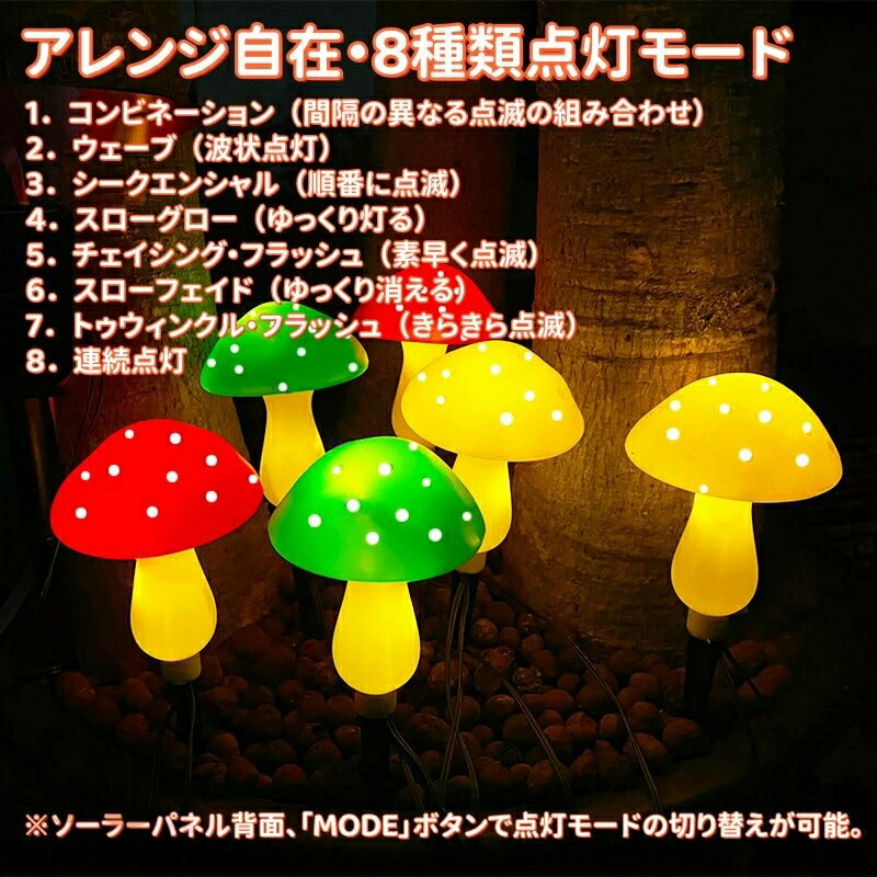 ガーデンライト キノコ ソーラーライト マルチカラー レッド ブルー イエロー