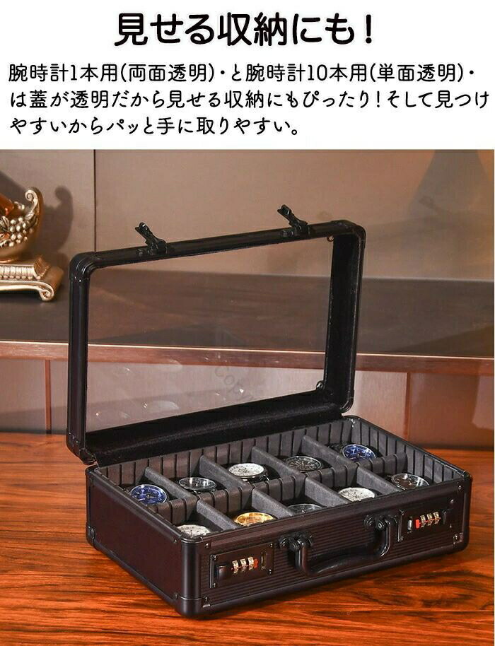 腕時計収納ケース 10本用 8本 18本 24本収納 ダイヤル式 鍵 時計ケース 腕時計収納ボックス 時計収納 ウォッチボックス 高級感 透明窓 見せる収納 インテリア 保管ケース アルミ 耐久性 腕時計 腕時計ボックス メンズ レディース コレクション ウォッチケース インテリア 時計ケース 腕時計 コレクション ウォッチケース ウォッチ ディスプレイ おしゃれ 1本収納 多用途