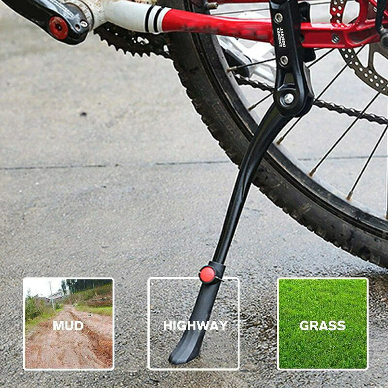 【高品質】アルミニウム合金素材を採用するこの自転車のキックスタンドは、軽量で防錆性能があり、強度が強くて耐久性があります。滑りにくい強化されたプラスチック製の足を備えて、濡れた路面での滑りや泥の沈み込みを防ぐことができます。