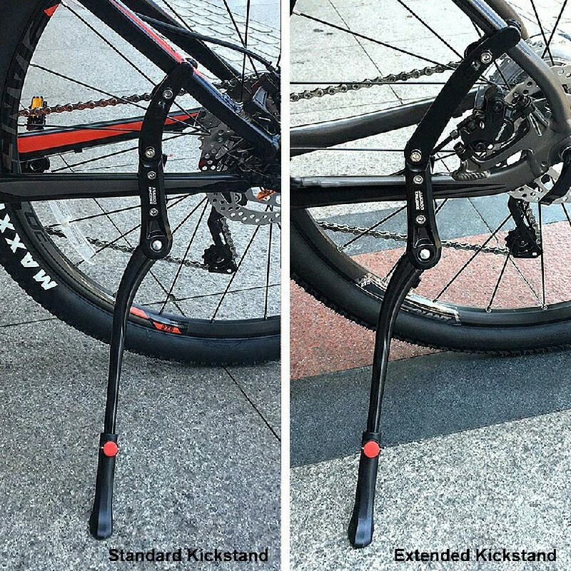 【長さ調整可能】標準キックスタンド調整範囲 (46-50cm)、延長キックスタンド調整範囲 (51-55cm)。長さを調節できれば、駐輪時の安定感もバッチリ確保できます。24"、26"、27.5"、28"(インチ)の自転車に対応可能で、ロードバイク、クロスバイク、マウンテンバイクなど様々ななバイク向けの汎用キックスタンドです。