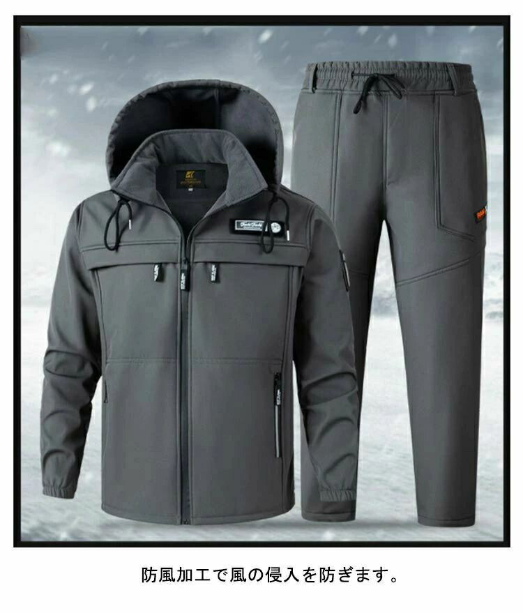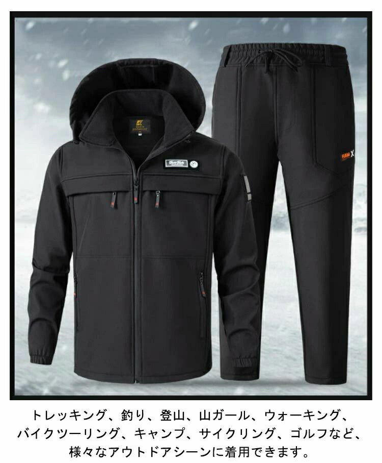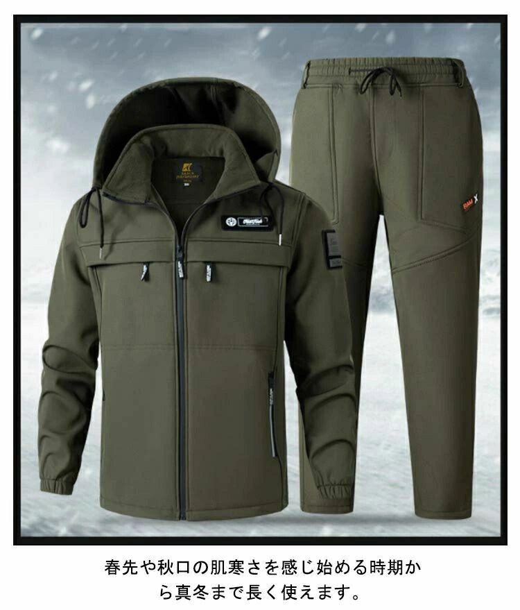 上下セット 裏起毛 メンズ ウインドブレーカー 厚手 防水 防風 テニスウェア ゴルフウェア 秋冬 裏ボア 防寒 撥水 作業服 ミリタリー ロングパンツ アウトドアウェア 長ズボン マウンテンパーカー