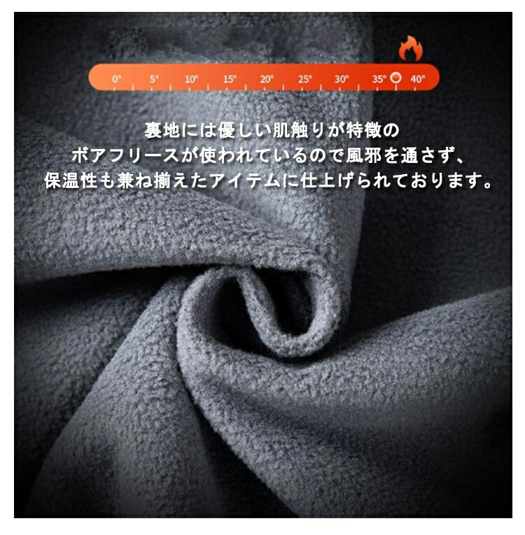 裏地には優しい肌触りが特徴のボアフリースが使われているので風邪を通さず、保温性も兼ね揃えたアイテムに仕上げられております。
