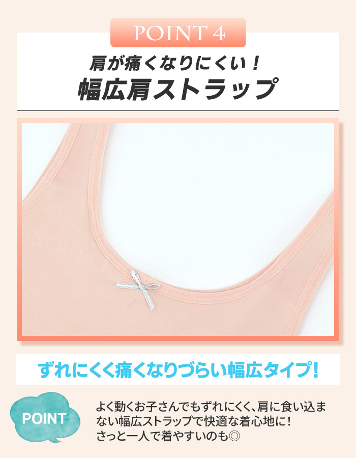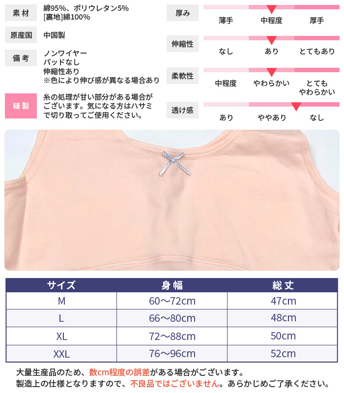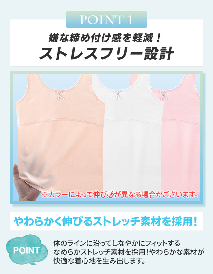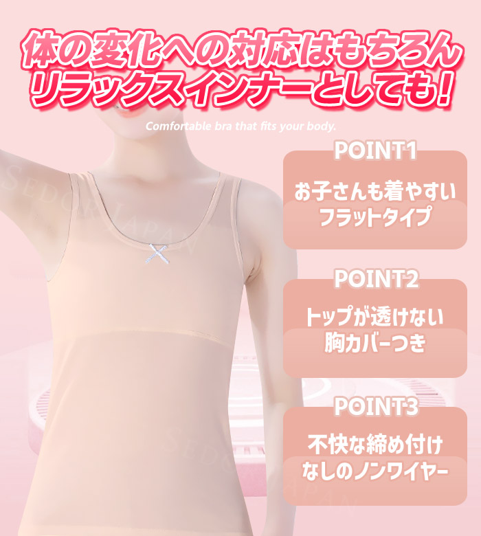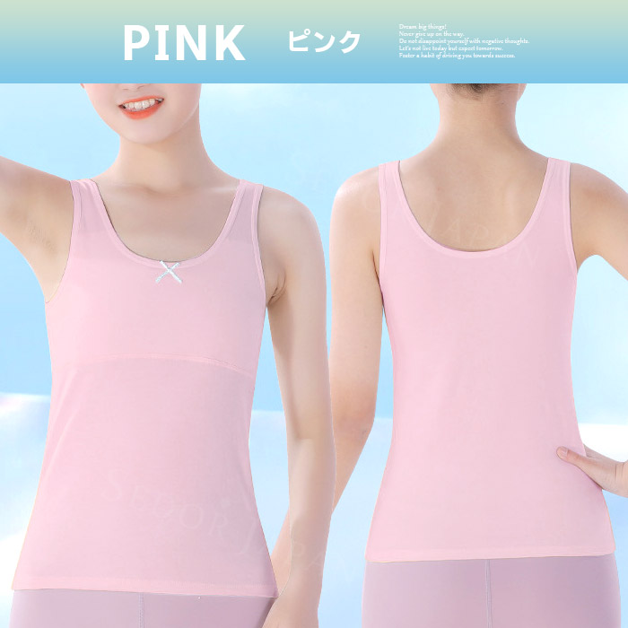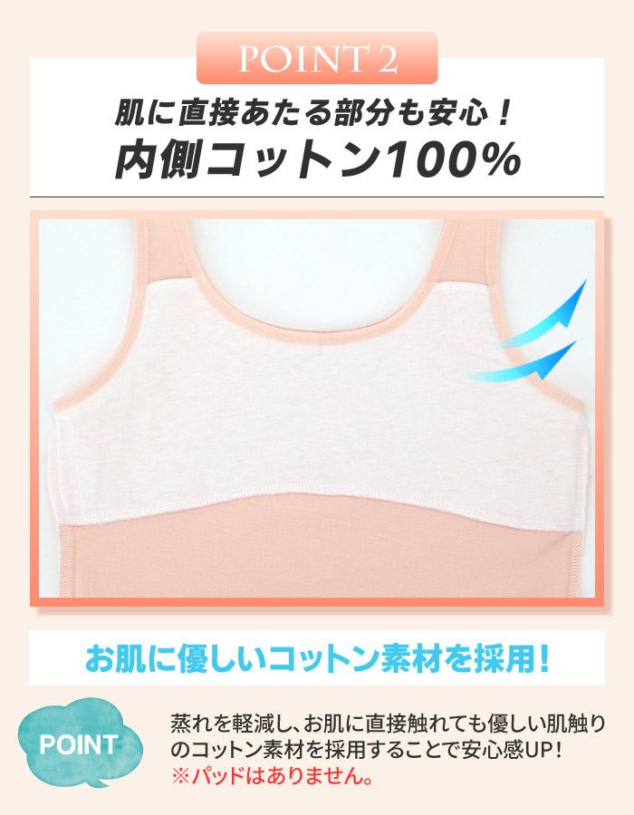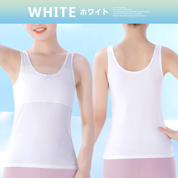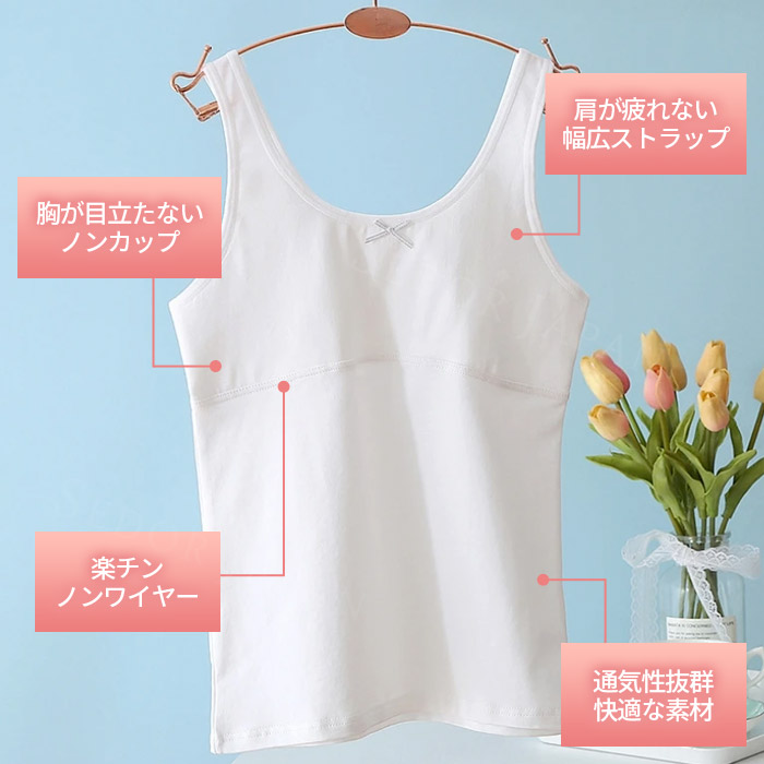 ジュニア タンクトップ キッズ 胸二重 透けない かくれんぼインナー 女の子 下着 肌着 ファーストブラ スポーツブラ カップなし ノンワイヤー 綿95% 無地 ストレッチ 小学生 M L X 通気性