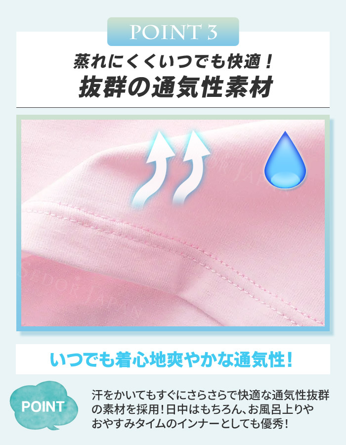 蒸れにくくいつでも快適!抜群の通気性素材♪