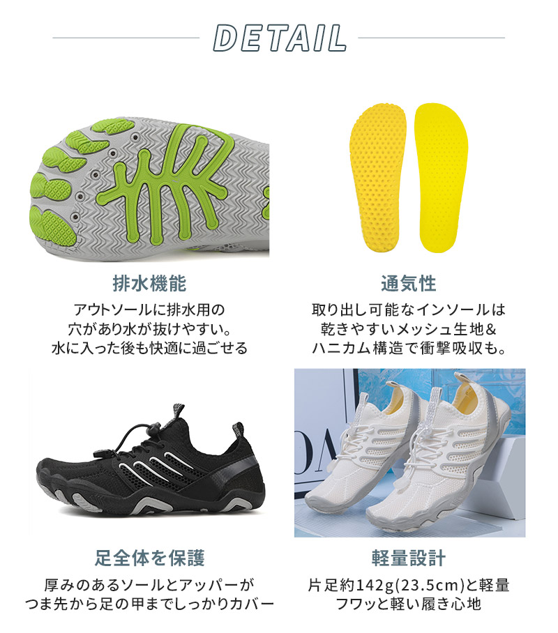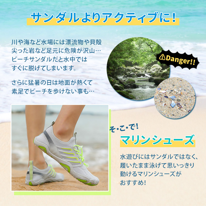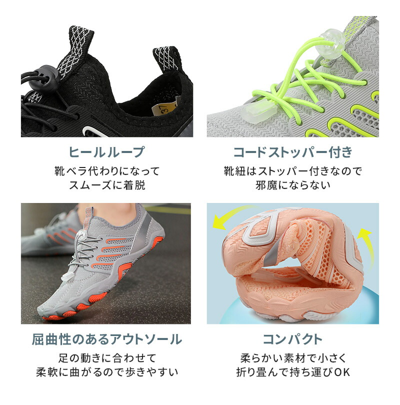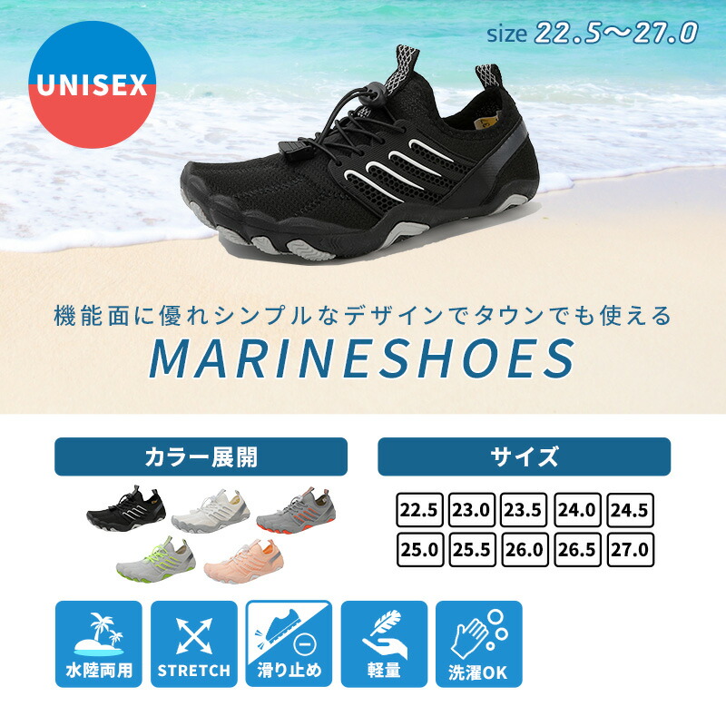 マリンシューズ レディース メンズ 水陸両用 靴 軽量 アクアシューズ サーフシューズ 速乾 排水機能 紐 コードストッパー 屈曲性 ゴム 滑りにくい インソール 22.5cm 23cm ヒールループ