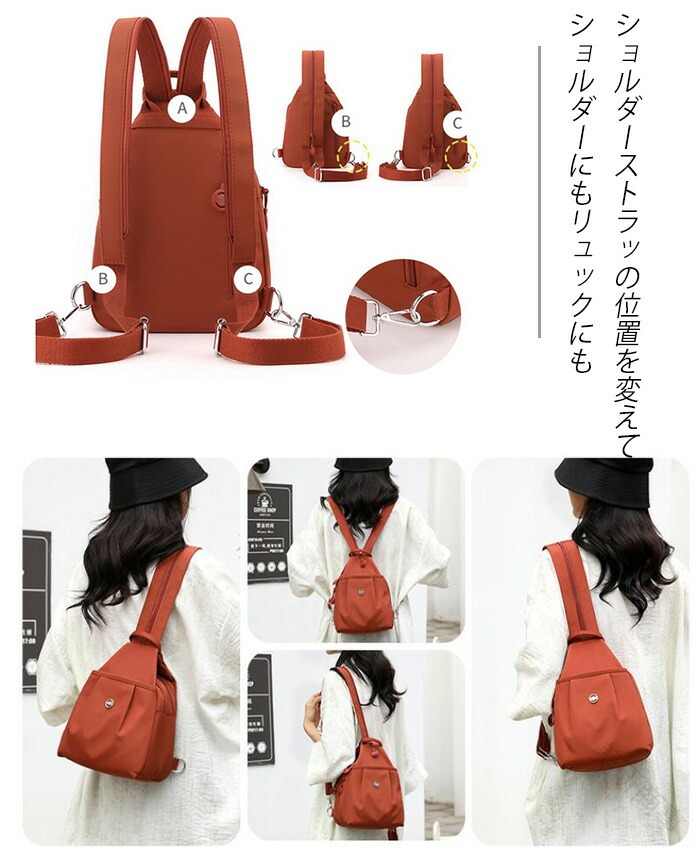 「小さめなのに大容量!」旅行や通勤もこれ一つでOK。撥水軽量で、どんなシーンも快適に!たくさんのポケットで整理整頓がしやすく、スマホ財布パスポートなど必要なものがしっかり収納できます。
