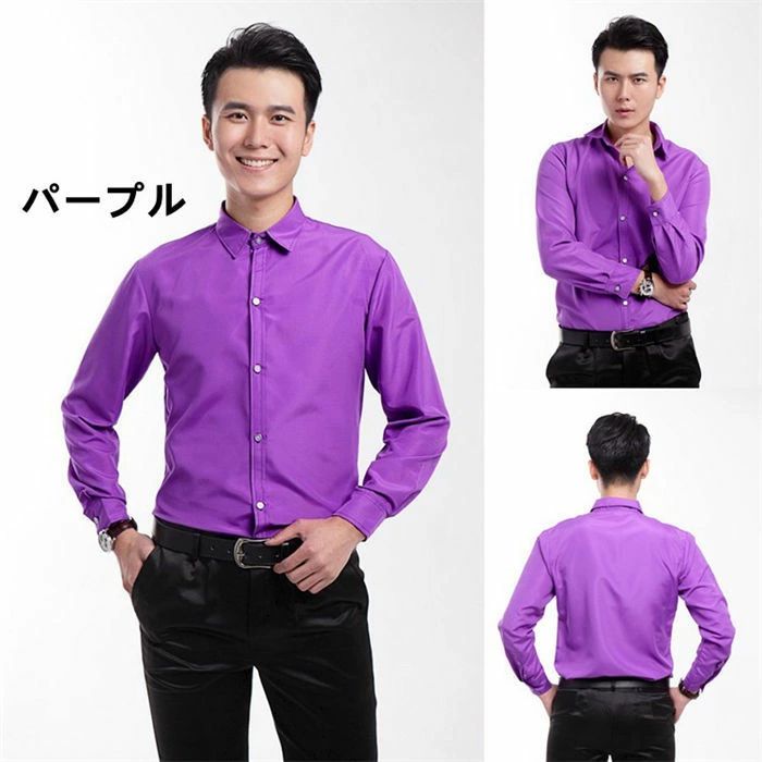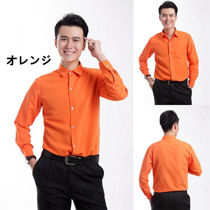 長袖 カラフル ステージ衣装 シャツ トップス ワイシャツ 新登場! ホワイト ブラック レッド イェロー レイクブルー スカイブルー 果緑 草緑 オレンジ パープル サファイア ワインレッド ピンク ローズレッド S M L