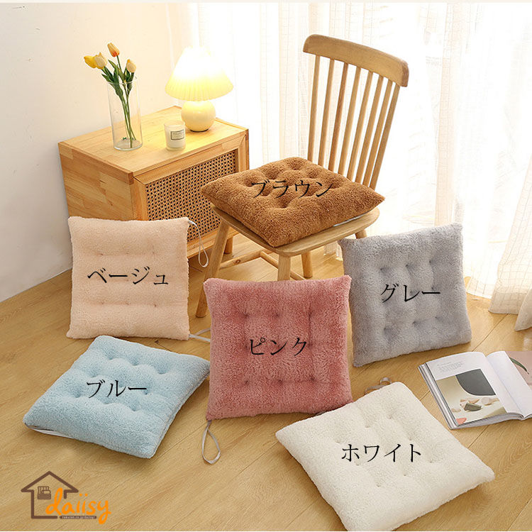40*40cm 50*50cm チェアパッド マット もこもこ フロアクッション 座布団 おしゃれ 正方形 純色 クッション 紐付き チェアマット 高反発 椅子用 ひも付き シートクッ 四角形