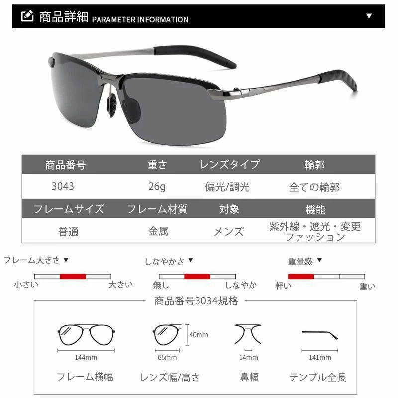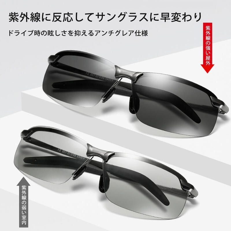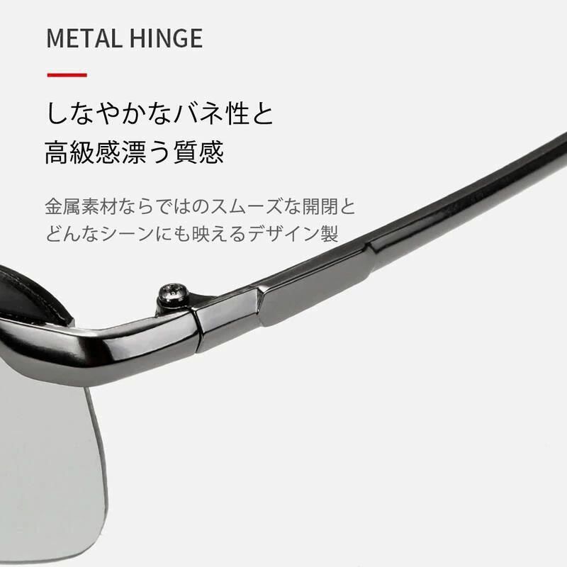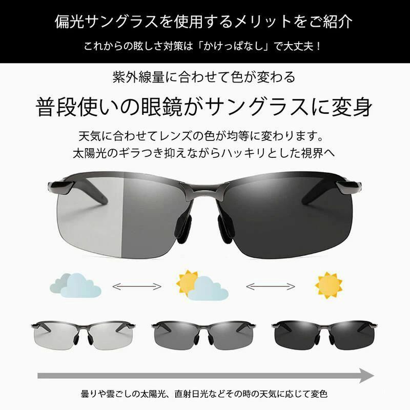 調光 メガネ 眼鏡 車 バイク メンズ サングラス 薄い 変色 偏光 釣り 紫外線カット スポーツ 偏光グラス おしゃれ ドライブ バイカーシェード 濃い ハーフリム UVカット サングラ 運転