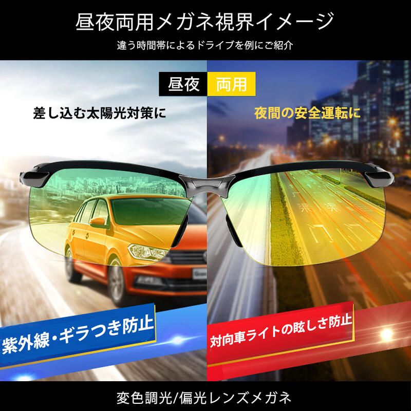 調光 メガネ 眼鏡 車 バイク メンズ スポーツ アウトドア 早い者勝ち ブラック ガンメタル シルバー
