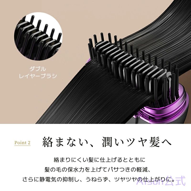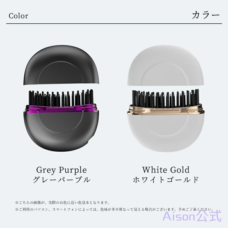 ヒートブラシ ヘアアイロン ブラシ 携 グレーパープル ホワイトゴールド