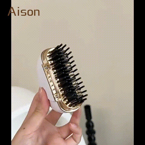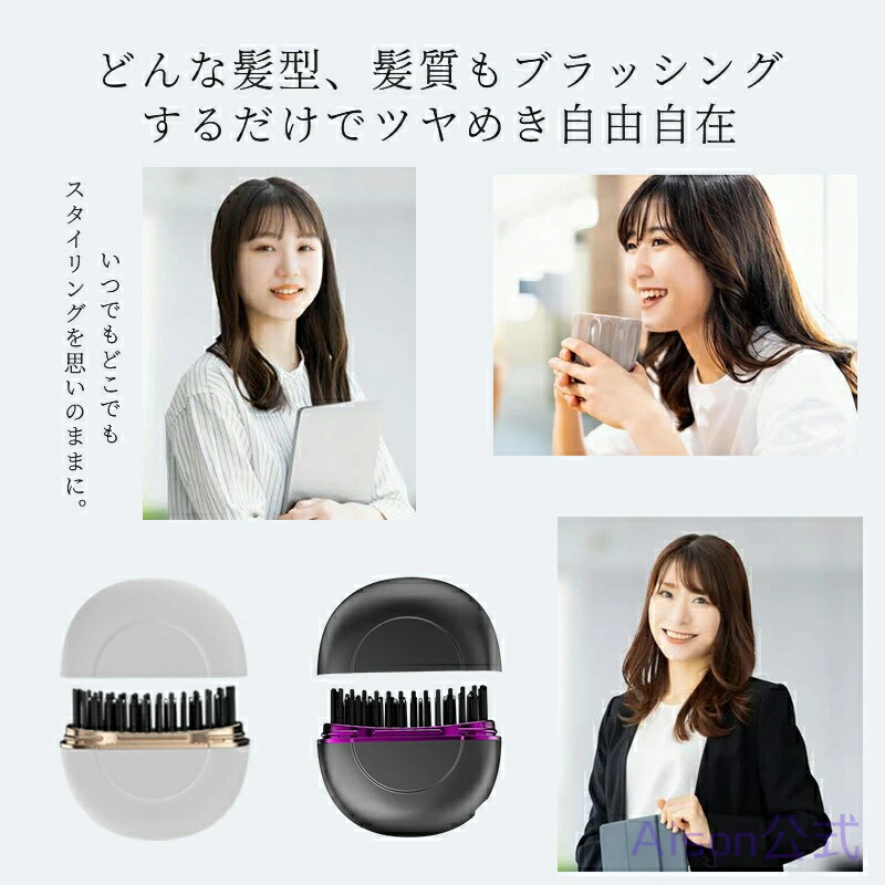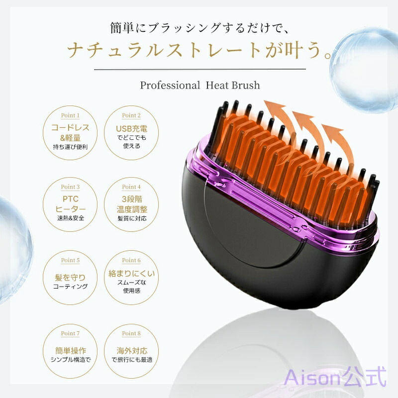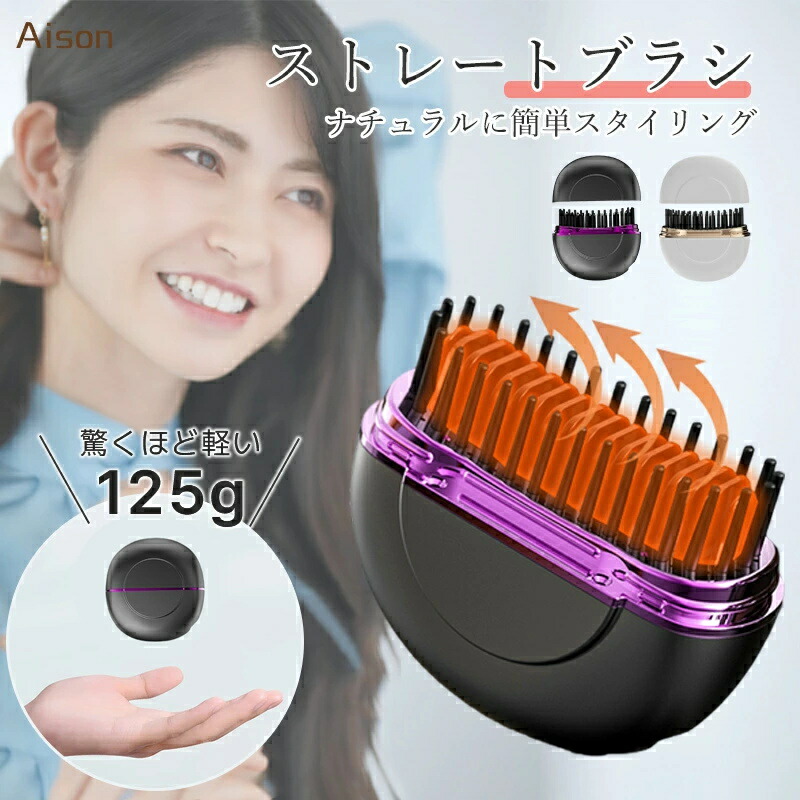 ヒートブラシ ヘアアイロン ブラシ 携帯用 ストレートアイロン コードレス 3段階調節 速熱 ストレートブラシ ミニ ポータブル ブラシ型 簡単スタイリング 持ち運び 軽量 出張 旅行先 プ 通勤通学