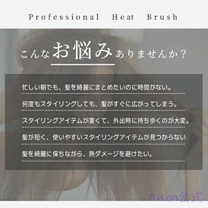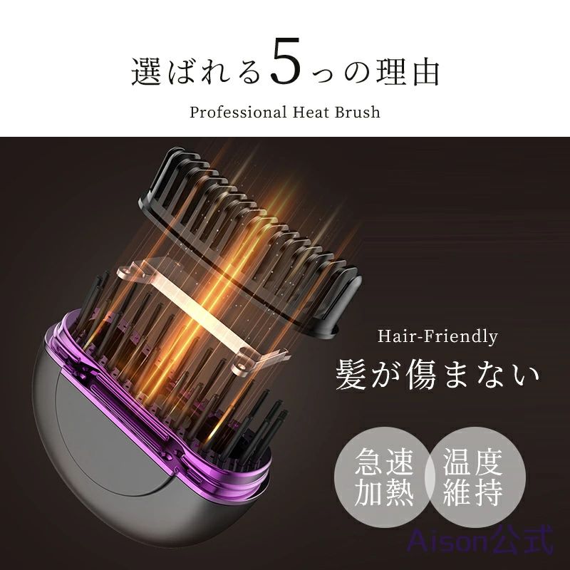 このヒートブラシは、火傷防止設計が施されており、安全にご使用いただけます。ストレートヘアだけでなく、カールヘアのスタイリングにも対応しており、多様なヘアスタイルを楽しむことができます。また、誕生日や特別な日のプレゼントとしても喜ばれること間違いなしです。