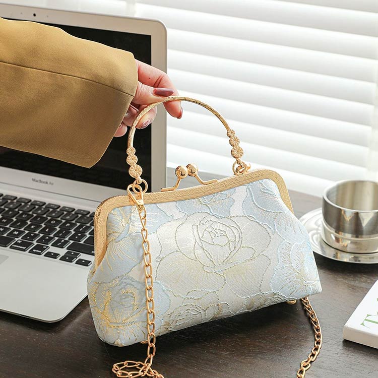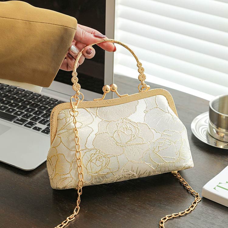 和装・洋装どちらにも合うデザイン!煌びやかなゴールドの口金がフォーマルな雰囲気に馴染みます。
