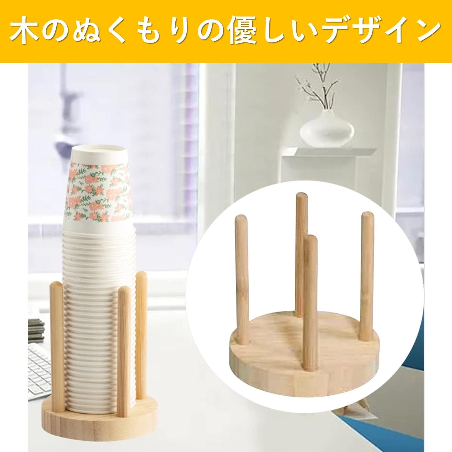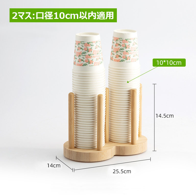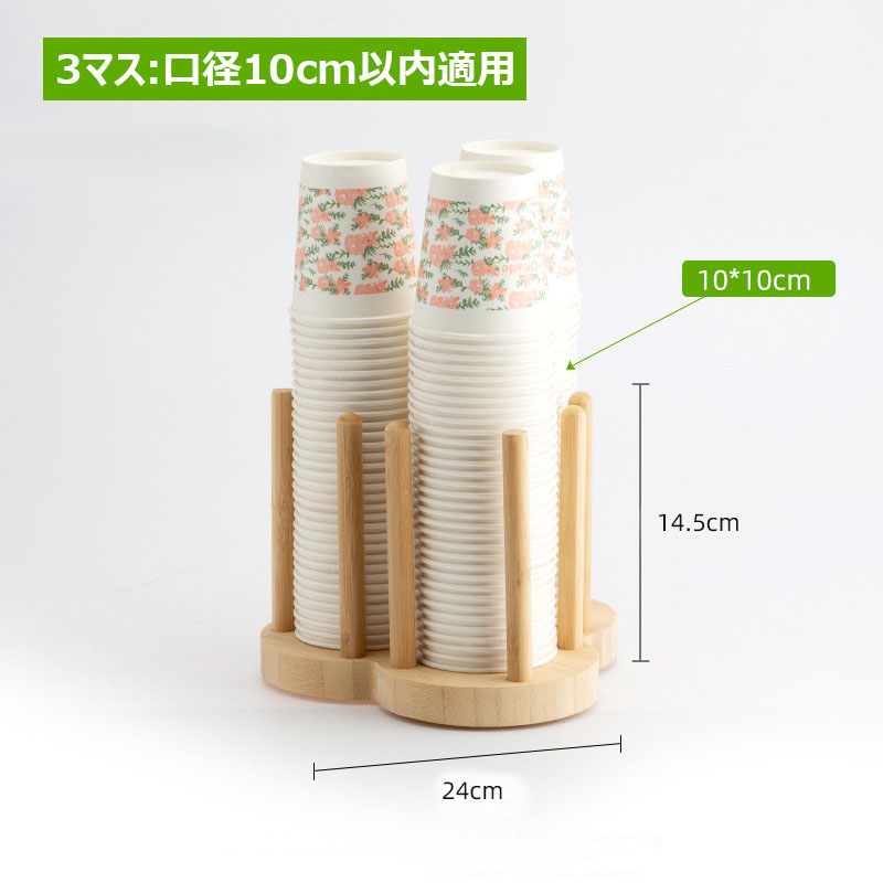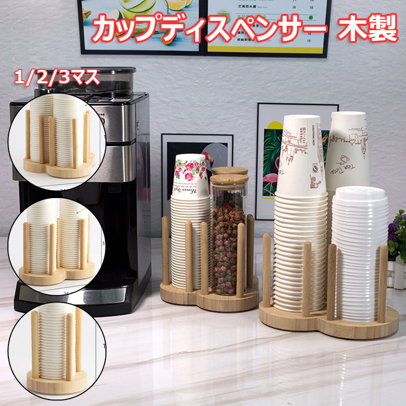 カップディスペンサー 木製 紙コップホルダー 使い捨てカップホルダー コーヒーカップと蓋収納 口径10cm以内適用 紙カップディスペンサー 1マス 2マス ディスペンサー スタンド 底部滑り止 3マス