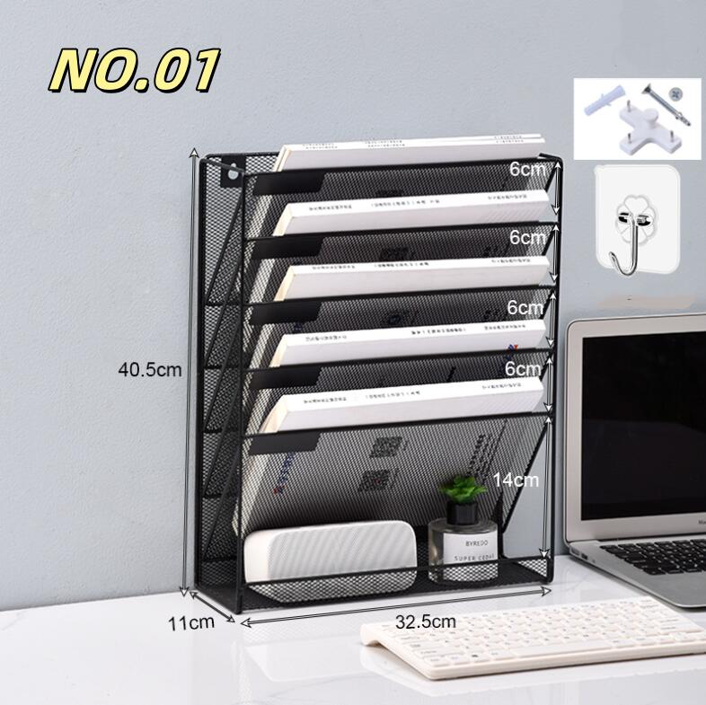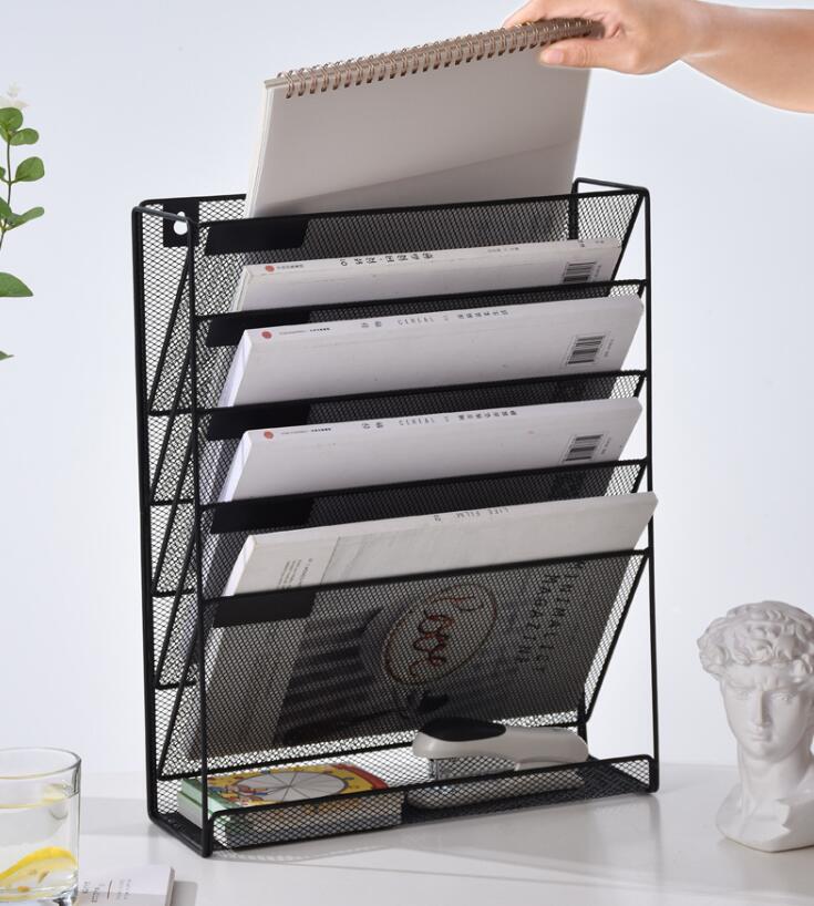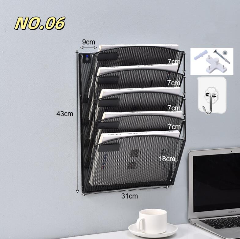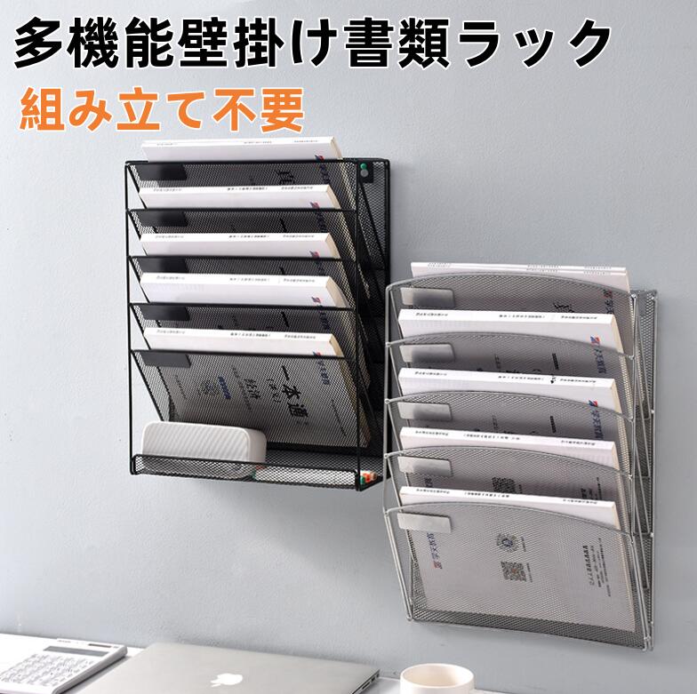 壁掛けファイルラック 6段 多機能壁掛け書類ラック 組み立て不要 卓上収納ラック 書類整理ボックス レターケース マガジンラック 書類トレー メッシュメタル レタートレイ 新聞 雑誌 A4フ 事務用品