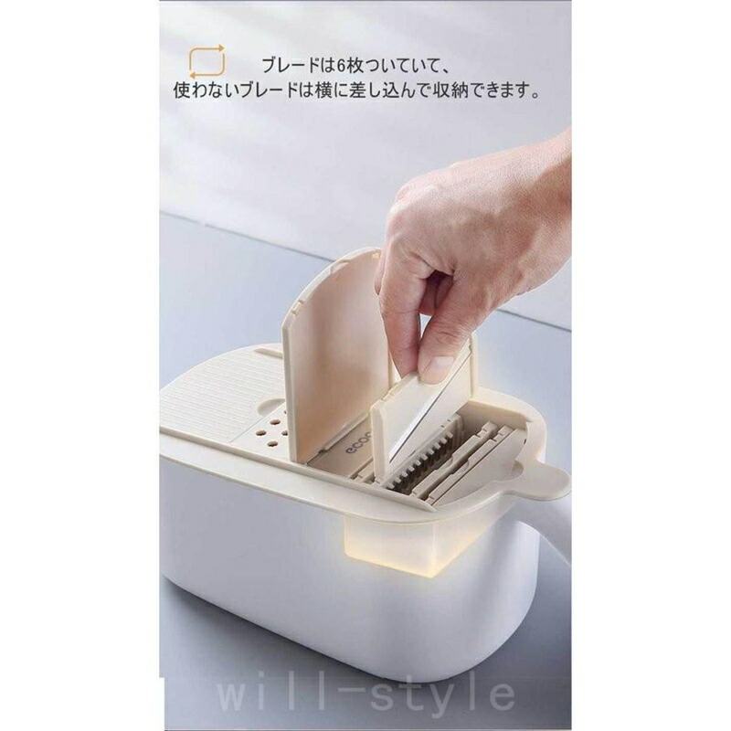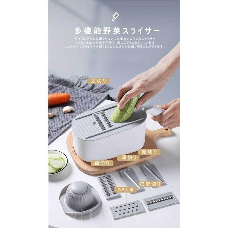 1台7役多機能千切り スライサー 野菜 キッチン用品 食器 調理器具 続々入荷中 ブルー グレー マスタード