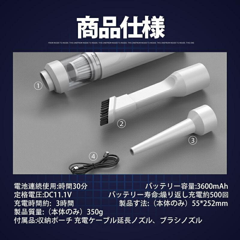 ハンディークリーナー 車 強力 掃除機 クリーナー コードレス 15000Pa吸引力 USB充電式 小型 ミニ 車載掃除機 狭い 隙間 便利 車内