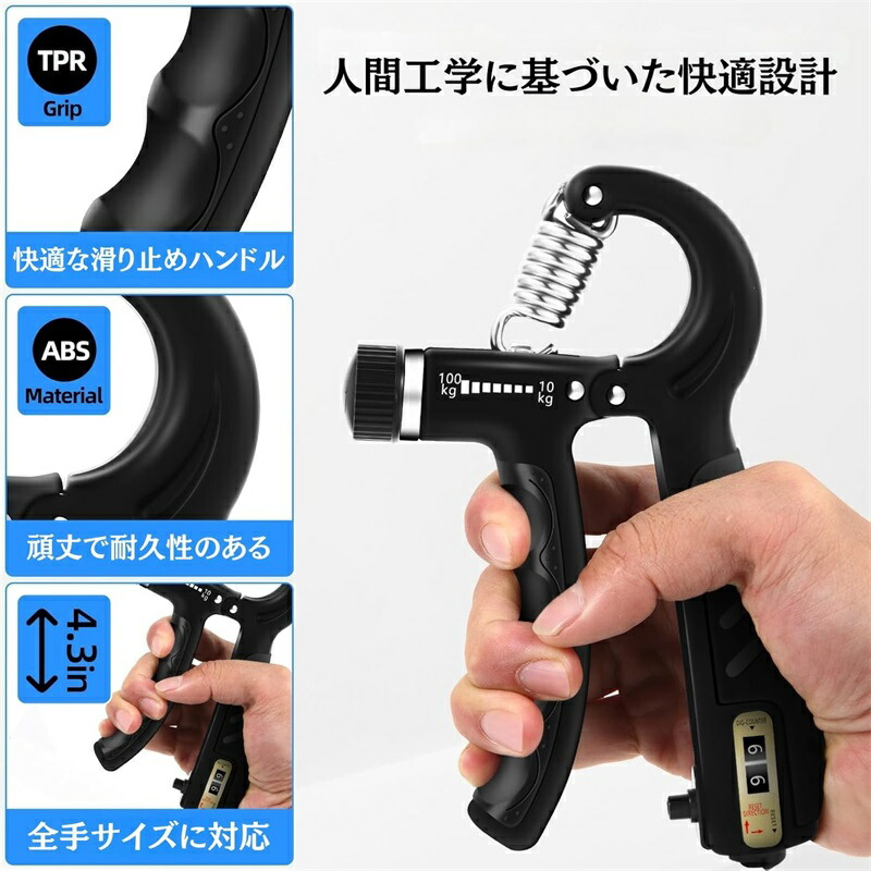 強化版 握力トレーナー 10-100kg 負荷調整可能 ハンドグリッパー 握力トレーニング 手 指 前腕筋力強化 ストレス解消 滑りにくい快適グリップ 人間工学デザイン 握力増強器 リハビリ器具