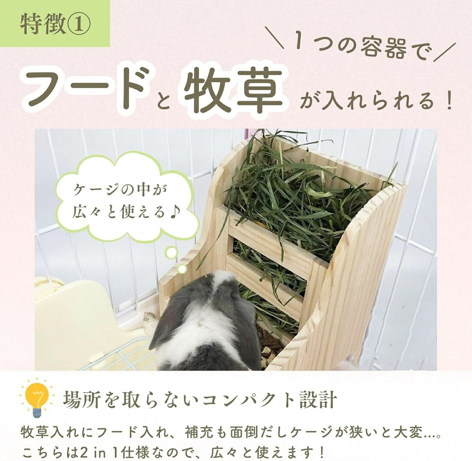ウサギ ウサギ牧草入れ 木製 牧草 フィーダー チモシー 餌入れ ケージ チンチラ デグー 餌やり モルモット