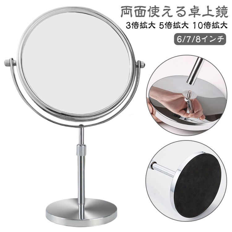 6インチ 両面 スタンドミラー 7インチ 卓上 10倍拡大鏡 卓上鏡 卓上ミラー 3倍 高さ 両面鏡 メイクアップ 8インチ ショップ メイク用 調節 店舗 上品 ミラー 移動式 安い 見やすい